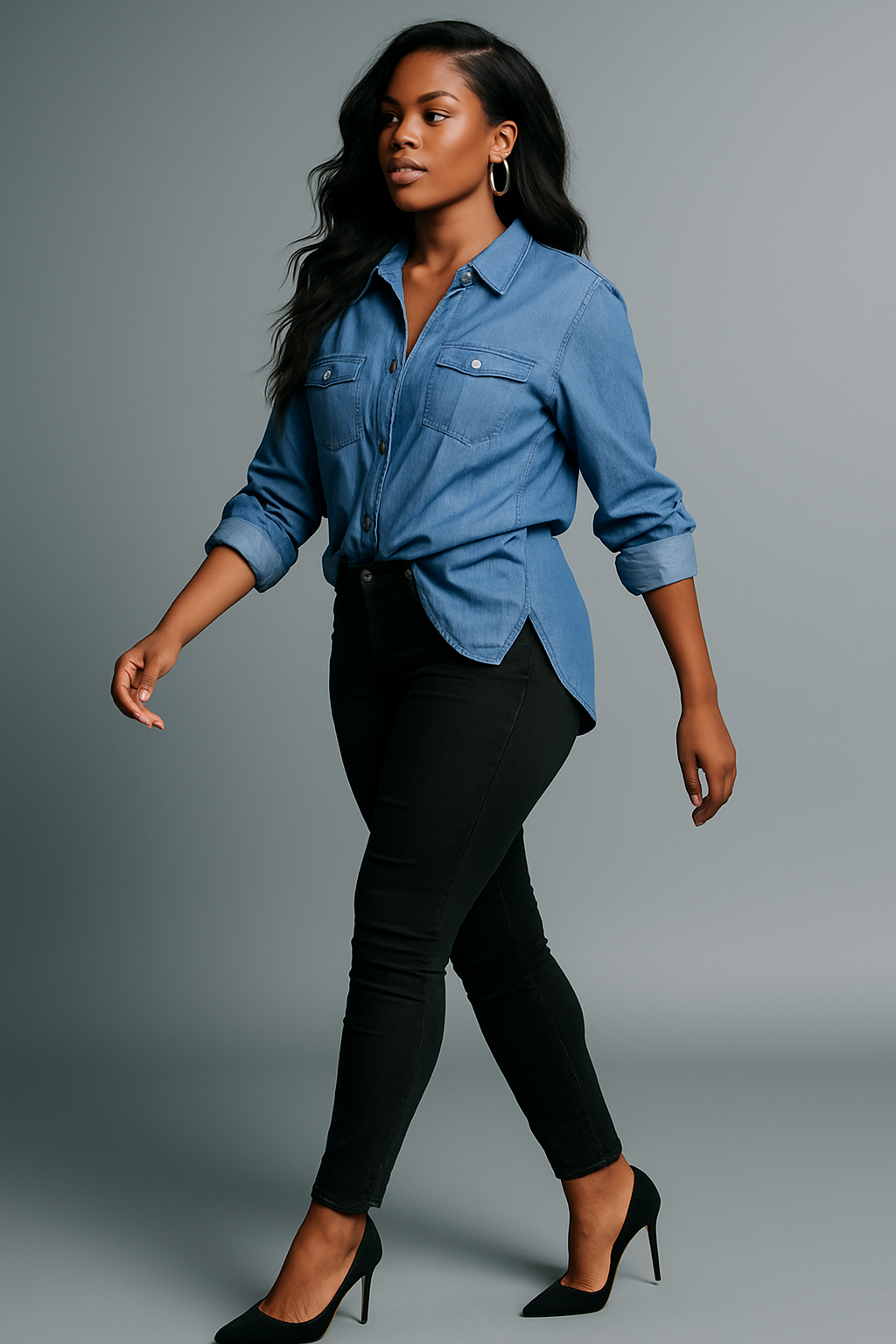 Elevate your everyday wardrobe with our Women’s Urban Denim Button-Down Shirt, designed for those who move with confidence and live in their own rhythm. This versatile denim top blends clean tailoring with street-luxe edge, giving you a look that’s both polished and effortlessly cool.