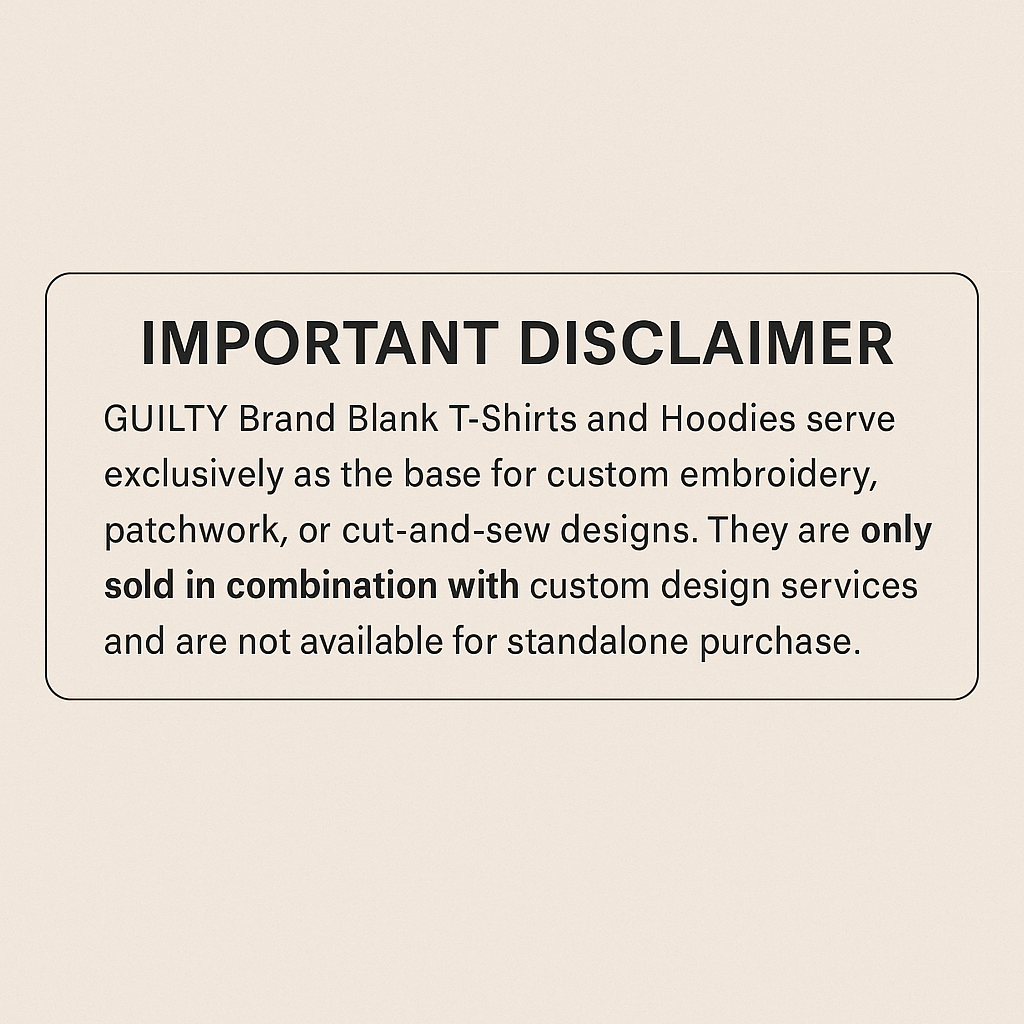 Introducing the GUILTY Brand Blank Heavy Tee — the official high-quality canvas for all custom orders. Designed for creators, artists, and customers who want a luxury foundation for embroidery, printing, chenille patches, cut-and-sew additions, and more.