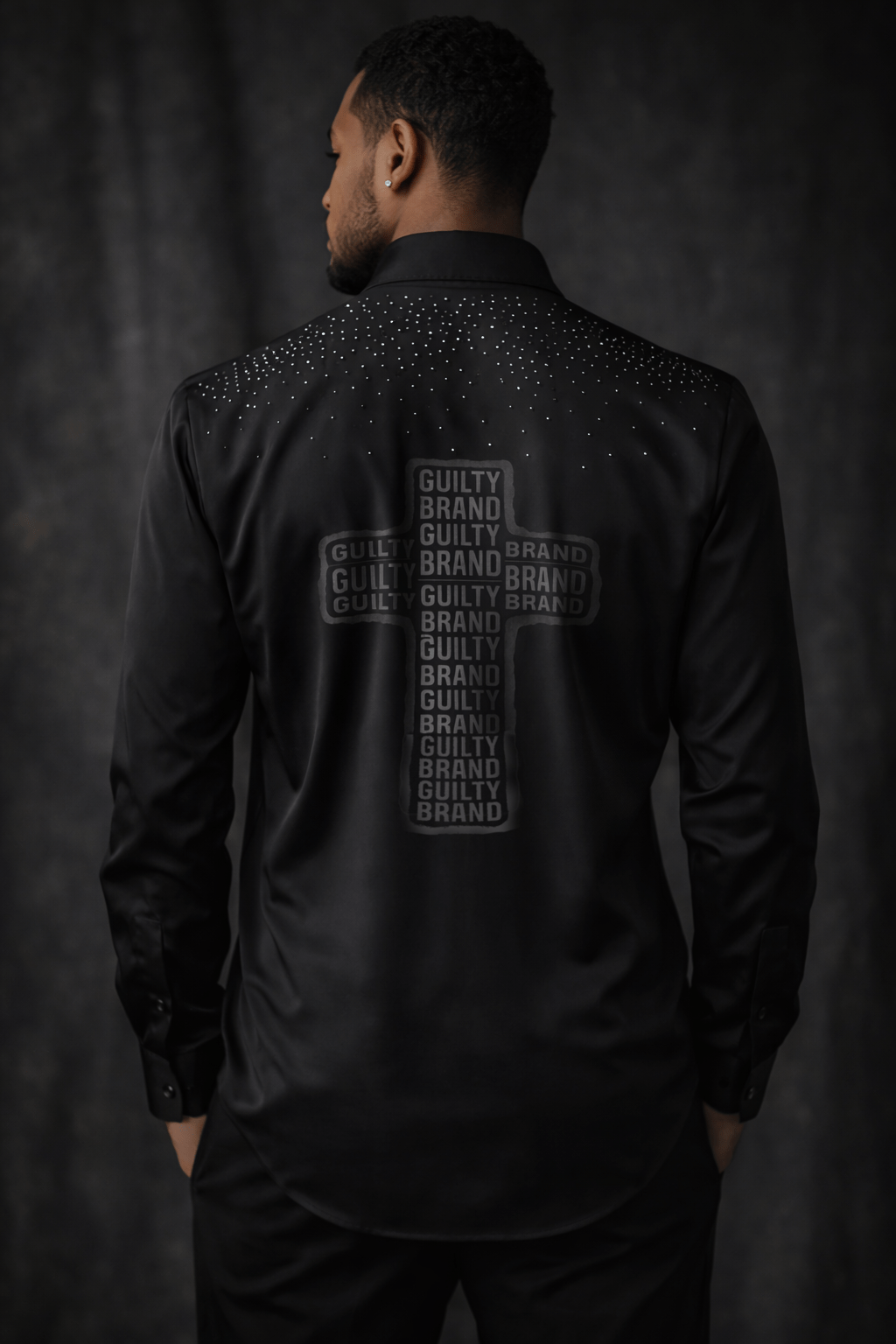 The CROWNED IN SACRIFICE™ Luxury Button-Down is a statement of faith, artistry, and refinement.